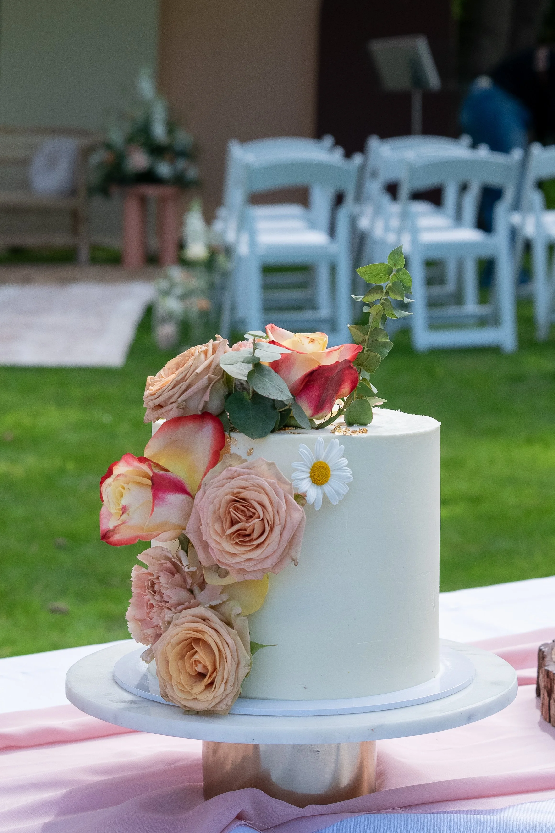 I love working with fresh flowers on cakes, of course always in a foodsafe way, with little vials filled with water to keep the flowers looking their best or floral tape. Ask me about the flowers you would like to use for your cakes!